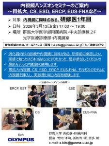 3月13日(金) 研修1年目対象の内視鏡ハンズオンを開催いたします。
